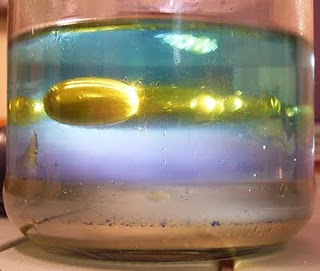 Todo el mundo ha visto las manchas de aceite, o de gasolina, gasoil...flotando en la superficie del agua, pero seguro que pocas veces habéis visto que alguna gota de aceite se hunda en "agua"......Ese es nuestro reto, encontrar la forma de que una gota de aceite de girasol o de oliva, se hunda en "agua".....y como reto experimental, que nuestra gota de aceite quede en el seno del "agua" sin flotar y sin hundirse, es decir que quede en equilibrio....